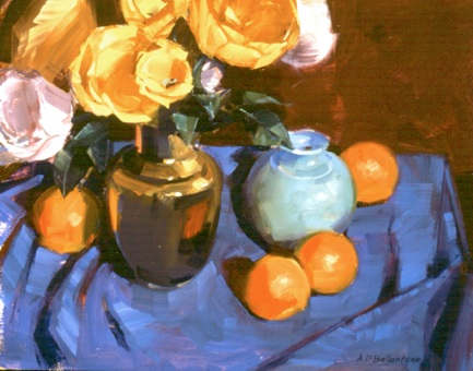 My painting entitled, "Yellow flowers with Oranges", a 16" x 20" oil